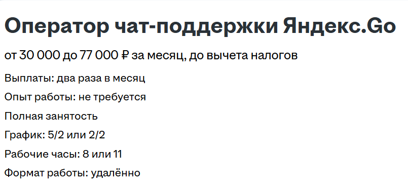 Я всё ещё нахожусь в поисках удалённой работы в колл-центре. Откликнулась в Яндекс на вакансию "Оператор чат-поддержки Яндекс Го".