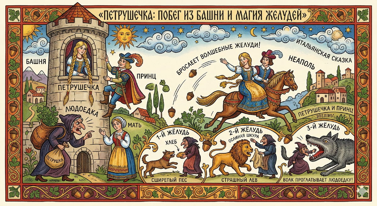 История Рапунцель и её итальянского прототипа Петрушечки (Prezzemolina) раскрывает древние фольклорные архетипы и тайные смыслы известных сказок братьев Гримм. В этой статье мы проводим подробный анализ сказки, сравниваем европейские мифы и легенды, а также исследуем магические свойства растений в культуре Средиземноморья. Узнайте, как оригинальный сюжет Джамбаттисты Базиле 1634 года превратил пассивную героиню в символ женской смекалки и воли, и почему итальянская версия «Рапунцель» до сих пор считается одной из самых динамичных историй в мировой литературе. Сюжет о девочке, которую мать «променяла» на еду, уходит корнями в глубокую древность. Мировая известность пришла к этой истории через немецкую «Рапунцель» братьев Гримм. Однако за 180 лет до них, в 1634 году, Неаполь зачитывался историей о Петрушечке (Prezzemolina). Если немецкая сказка — это меланхоличная история о потере и обретении, то итальянская «Петрушечка» — это настоящий «экшн» XVII века, где героиня не ждет спасения, а с