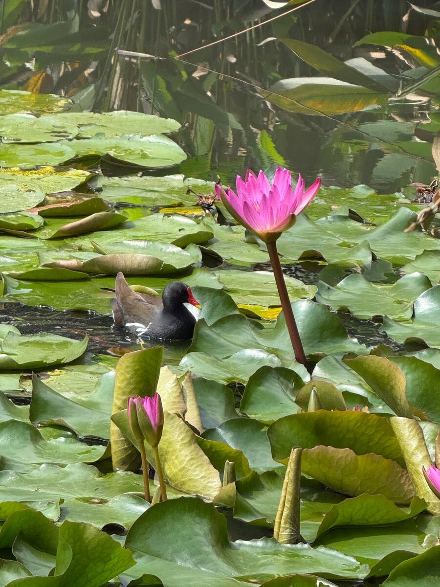 Специальная водная зона сада занимает более 20 000 м², где выращиваются десятки видов и сортов кувшинок со всего мира. Здесь можно увидеть разнообразие форм и оттенков — от нежных белых и розовых до насыщенно пурпурных и ярко-желтых цветков, плавающих на зеркальной поверхности воды. Коллекция Nymphaea в ботаническом саду выполняет не только декоративную роль. Специалисты ведут научную работу: собирают пыльцу, проводят ручное опыление, изучают рост растений и выводят новые гибриды. Благодаря этой работе коллекция постоянно пополняется и служит важной площадкой для сохранения и изучения водных растений, превращая пруды сада в настоящий живой музей кувшинок.