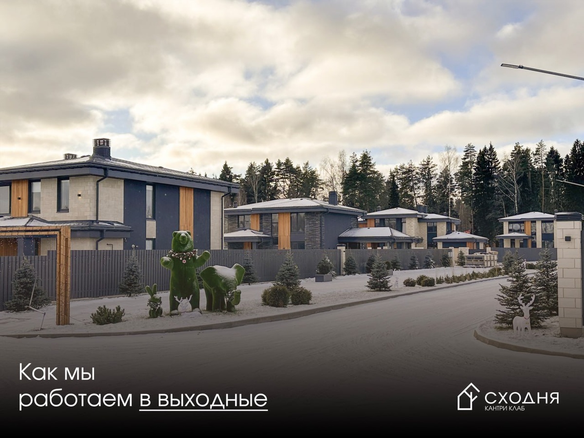 🟢 Приглашаем вас в посёлок Сходня Кантри Клаб: прогуляйтесь по вековому лесу, посмотрите дома и участки, познакомьтесь с атмосферой спокойной загородной жизни. Часы работы офиса продаж в предстоящие праздничные дни: с 10:00 до 19:00 Планируйте визит в удобное для вас время — будем рады встрече и с удовольствием покажем посёлок и ответим на все вопросы.