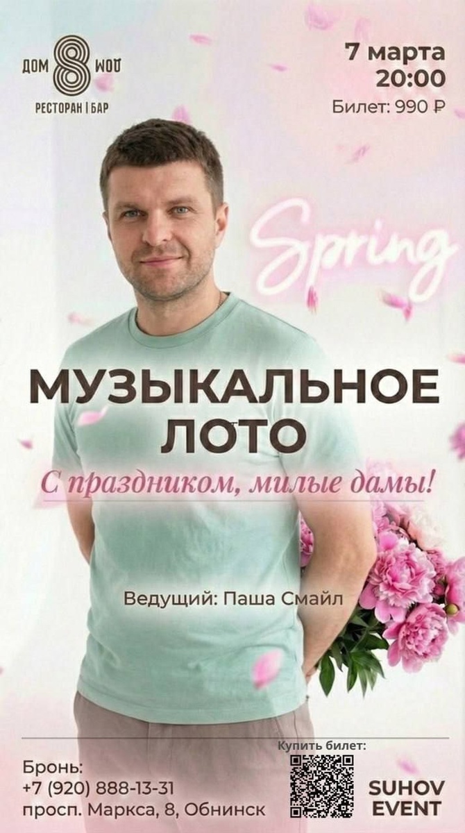 » ❤️ 🗓 7 марта | 🕗 20:00 Празднуем самый весенний праздник ярко и весело! Любимые хиты, музыкальные раунды, конкурсы, подарки и море хорошего настроения 🌷 Отмечайте песни в бланках, участвуйте в игре и первыми кричите: «Бинго!» 🎉 Идеальный вечер, чтобы провести его с подругами, любимыми или просто подарить праздник себе ✨ 📍 г. Обнинск, пр-т Маркса 8, этаж 2 📞 Бронь столов: +7 (920) 888-13-31 🎟 Билеты по ссылке https://obninsk.qtickets.events/192739-muz-loto-2000-kh 👍 Подписаться | Ваша реклама