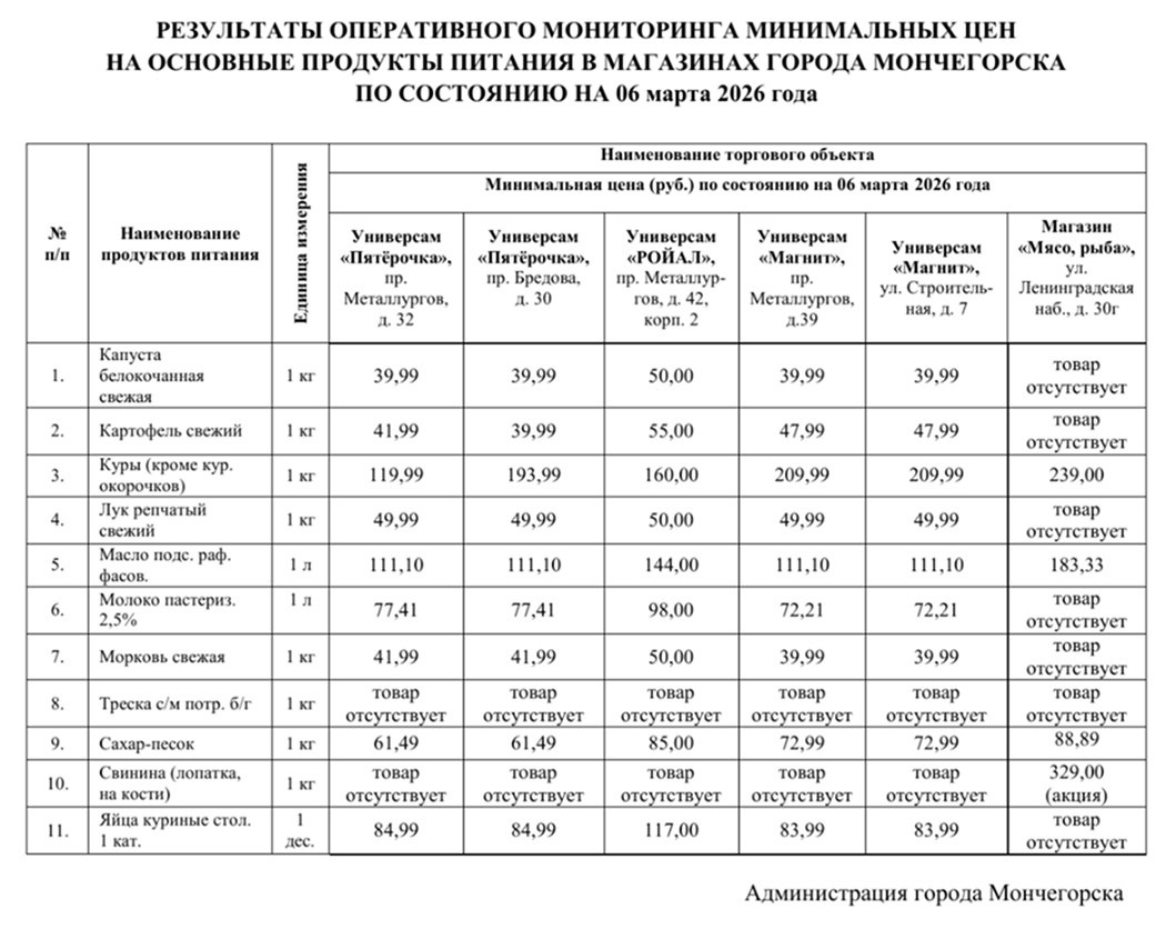 🧀 Что, где и почем купить в Мончегорске