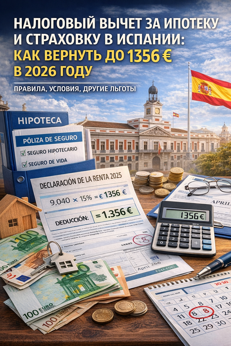 - В Испании продолжают действовать налоговые льготы для владельцев жилья, купленного в ипотеку до 2013 года. Налоговое агентство страны подтвердило, что расходы на ипотечное страхование могут учитываться при подаче декларации о доходах. Это означает, что часть уплаченных средств можно вернуть через налоговый вычет.