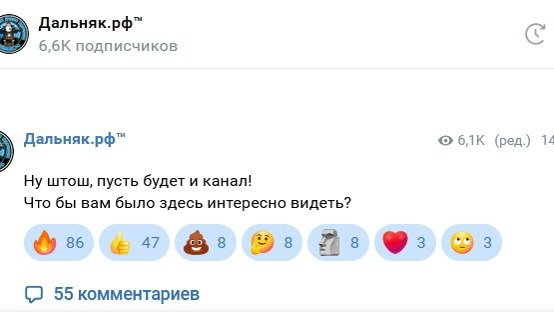 Если честно, то до сих пор не понятно накой это придумали ВК и что с этим делать. спустя это время хотелось-бы обратную связь от вас. Интересует несколько вопросов: 1. Как часто вы не замечаете публикации на стене группы по сравнению с нашим каналом? 2. Какая информация для канала и для стену в приоритете? 3. Если в канале будет много публикаций - это будет напрягать или нет? 4. Есть мысли в канале публиковать вопли помощи и другую чрезвычайно важную информацию, а хохмы и развлечения перенести на стену. 5. Может вообще его нафиг закрыть? Кто не понял про что идет речь, то вот ссылка на наш канал ВК: https://vk.com/im/channels/-230745358