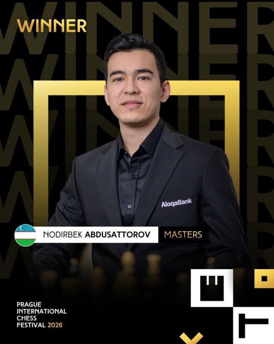 ! 🇺🇿Нодирбек Абдусатторов досрочно стал победителем престижного турнира «Prague International Chess Festival». В последнем туре он сыграл вничью с 🇺🇸Хансом Ниманном (США), что позволило ему финишировать с результатом 6 очков из 9. На протяжении всего соревнования Нодирбек демонстрировал стабильность и волю к победе: 3 выигранные партии и 6 ничьих, не потерпев ни одного поражения. Поздравляем чемпиона! Желаем новых побед и ярких шахматных вершин. 📸 Фото: Prague International Chess Festival