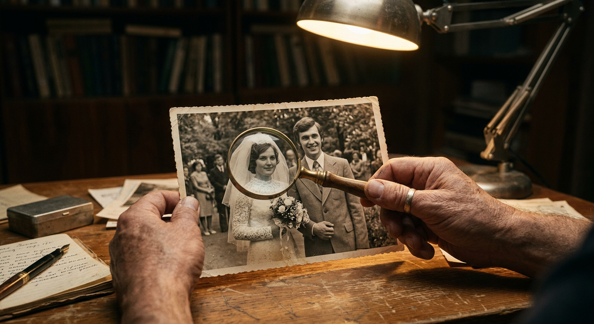 — Я думала, таких фото не осталось. Альбомы пропали, когда переезжали. Осталось только одно — свадебное, официальное. А это... это мы в парке. После ЗАГСа. Володя сказал: "Пойдём сфотографируемся отдельно. Только мы". Пошли. Вот оно.