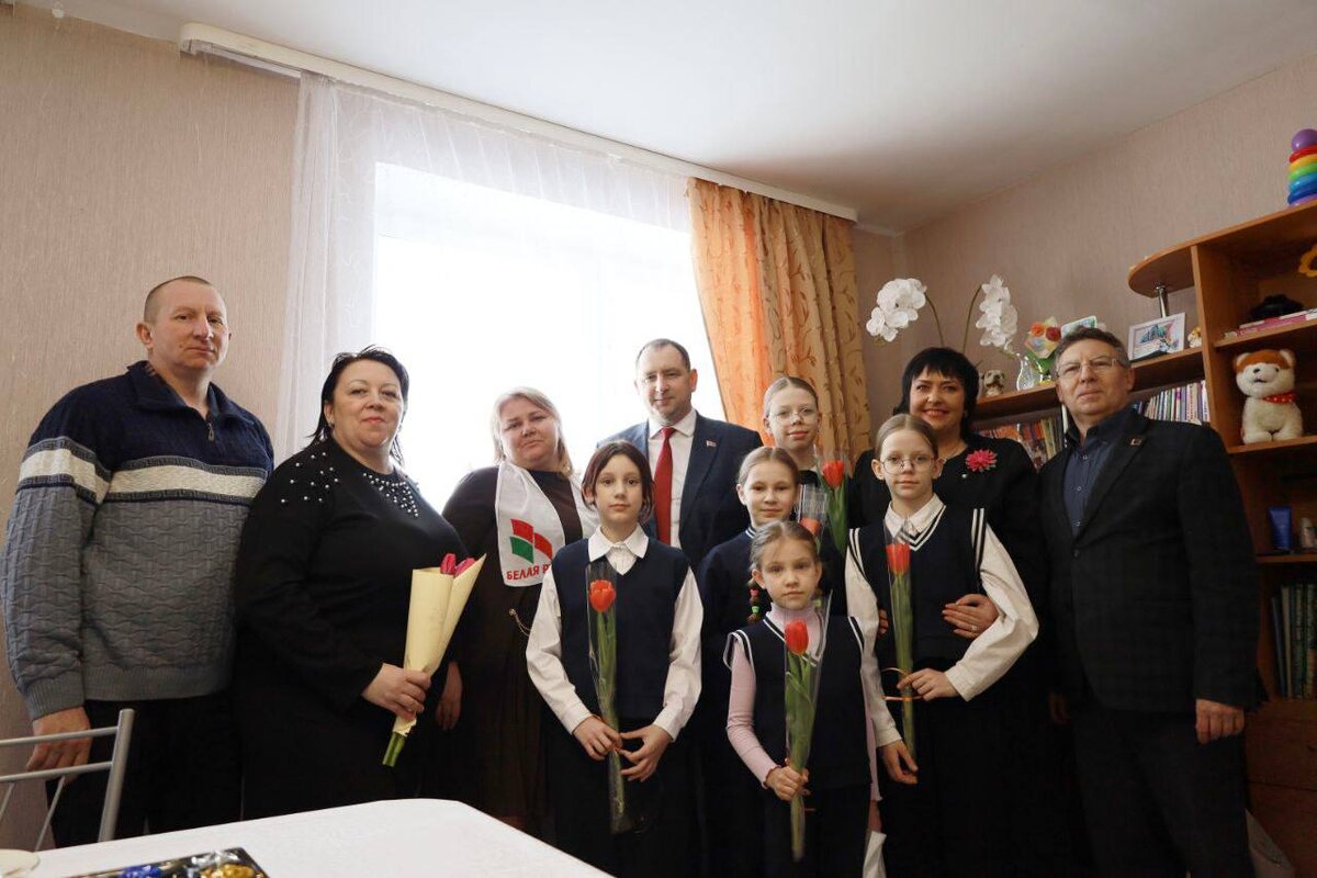 ⚡️Участие в поездке приняли начальник отдела идеологической работы и по делам молодежи Ольга Фиешко, начальник отдела по образованию Ольга Красакова и начальник финансового отдела райисполкома Александр Ткаченок. 🌠Гости приехали с цветами и сладостями, которые стали приятным дополнением к теплым словам. 🪻От имени райисполкома, райсовета депутатов, депутатского корпуса района, РО РОО «Белая Русь» Александр Ерашов поздравил мам-воспитательниц и их воспитанниц, пожелал здоровья и счастья, а девочкам — успехов в учебе и светлого будущего. 🫴В семье Натальи Бирюковой воспитываются 7 девочек, у Елены Колесниковой — 4. ❤️Такие визиты стали доброй традицией, когда руководство и общественные организации объединяются, чтобы подарить внимание и заботу тем, кто в них нуждается.