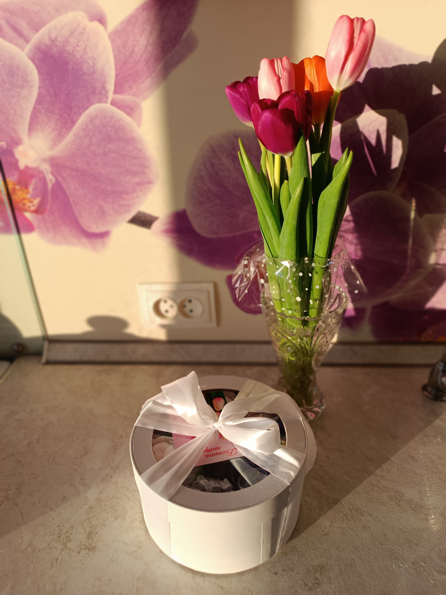 Утро началось с маленьких поздравлений от коллег. Коллеги мои "женского полу" , но все равно очень приятно. Точнее есть два мужчины, но они
