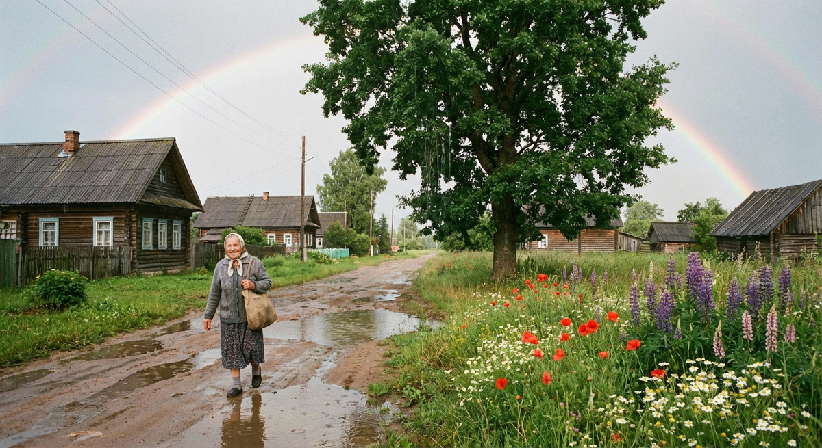 Баба Настя пошла обратно. Три калитки. Мимо пустого дома Митричевых, мимо бурьяна в рост человека. Над головой — небо, огромное, деревенское, какого в городе не бывает. Под ногами — земля, тёплая, родная, в которой лежат все, кого она когда-то любила.