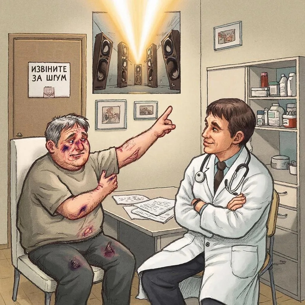 — Совершенно верно, доктор! Теперь каждое воскресенье я поднимаюсь к соседу заранее, зная, что впереди ждёт веселый вечер, хорошая компания и море позитивных впечатлений. Правда, зеркало стараюсь обходить стороной, пока синяки не сойдут окончательно.