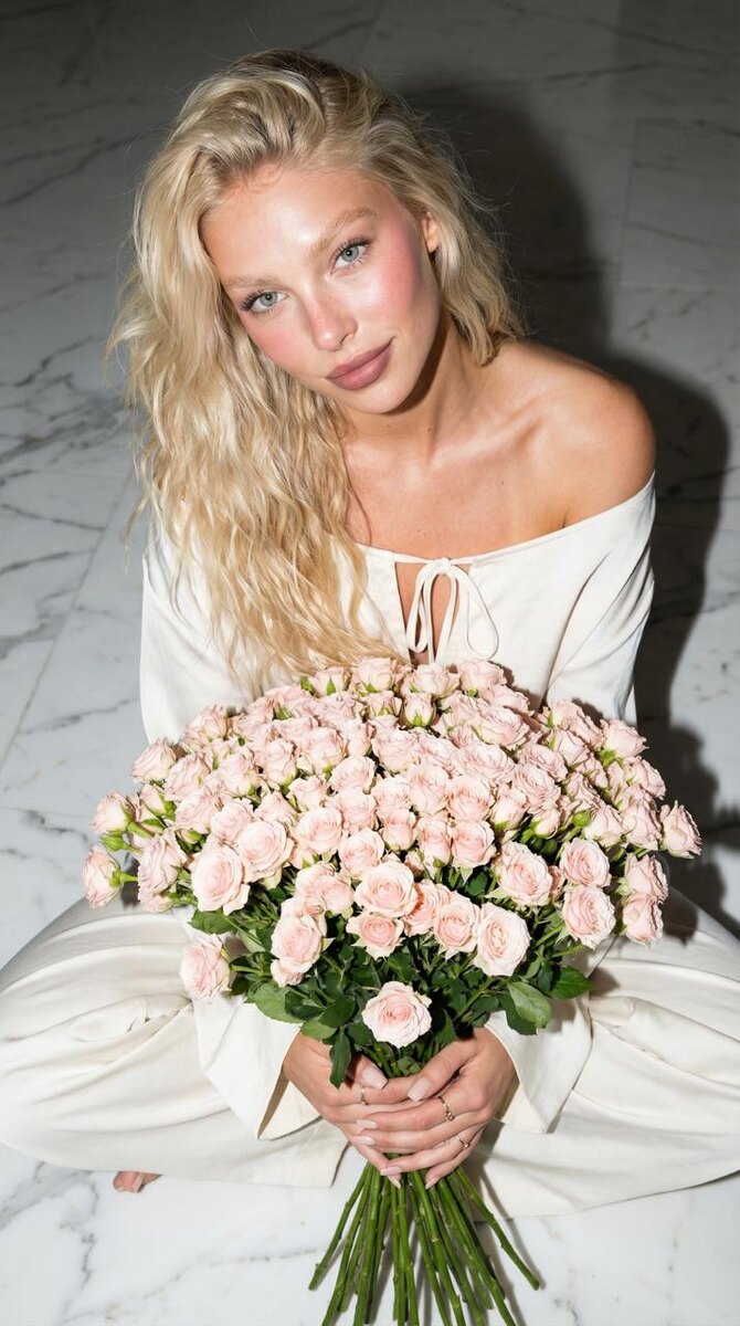 ✨✨✨✨✨✨✨✨✨✨ для генерации такого фото: ✨ загрузи в бот @aibudka_bot свое фото (лицо должно быть хорошо видно) ✨ выбери Nano Banana Pro (обязательно ставь Pro для реалистичной генерации) ✨ параметры 2к, 9:16 (можно любые другие) ✨ вставь промпт (нажми, чтобы скопировать): Создай портрет, не меняя черты лица\.Ультрареалистичная домашняя съемка\. Девушка сидит на мраморном светлом белом полу в расслабленной, но уверенной позе\. Она держит огромной букет кустовых нежно розовых роз\. Розы мелкие, в большом количестве \(около 300 штук\)\. Нежная улыбка\. Безупречный макияж с акцентом на губы пудрово коричневые\. Волосы длинные, волнистые\. На ней домашний костюм молочный, лонгслив свободный со спущенным плечом , завязанный по грудью в узел\. Свободные брюки длинные\. Маникюр аккуратный, нюдовые, квадрат форма ,видно пару колец\. Формат немного боковой, сверху вниз\.Эффект яркой, жёсткой вспышки\. 💗 https://t.me/aibudka_bot 💗 #женскийдень #иифото #иифотосессия