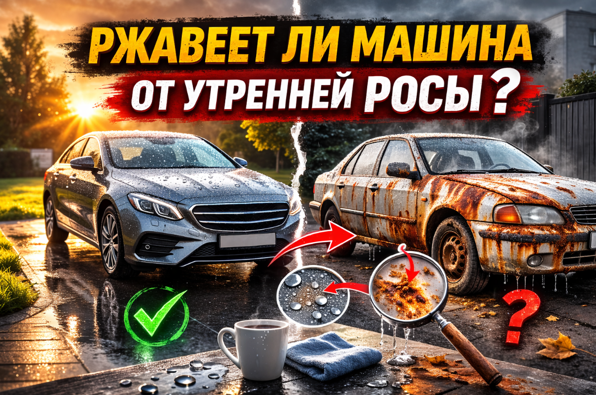 Многие водители уверены: главный враг металла — это соль и реагенты, которыми щедро посыпают дороги зимой. А лето? Лето — это благодать. Солнышко, сухой асфальт и... безобидная утренняя роса на капоте. Но если я скажу вам, что именно эти хрустальные капельки воды по утрам «съедают» ваш автомобиль быстрее, чем вы успеваете накопить на перекрас? Давайте разбираться, почему природа играет против нас. Ребята, если вам нравятся мои материалы, можете поддержать копеечкой по кнопке ПОЖЕРТВОВАТЬ. Уверяю вас, средства пойдут на хорошие дела. Каждое утро происходит одно и то же: за ночь металл остывает, а на рассвете влажный воздух начинает прогреваться. Температура поверхности машины оказывается ниже «точки росы», и вуаля — весь кузов покрывается ровным слоем влаги. Проблема в том, что роса — это не просто вода. Это идеальный проводник для коррозии. Вот здесь кроется главный подвох. Многие считают, что машина в металлическом гараже — в полной безопасности. На самом деле всё наоборот. В обычном