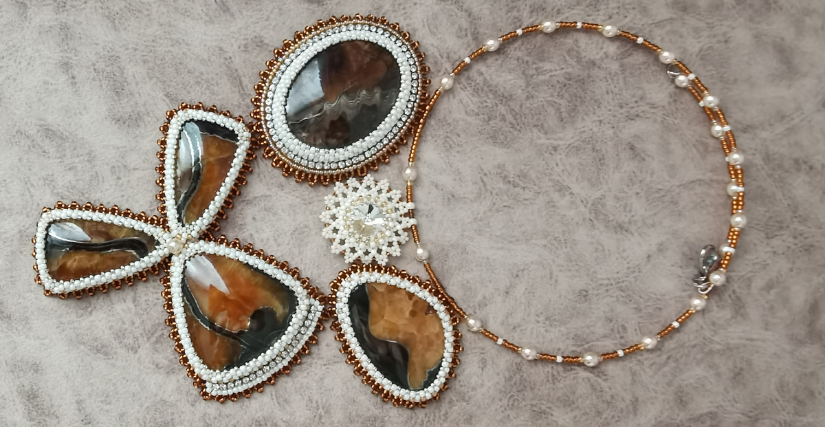 В этот раз повезло мне - я выиграла подарок, о котором и мечтать не могла - это чудесное колье с симбирцитами и бисером Татьяна сделала своими руками!