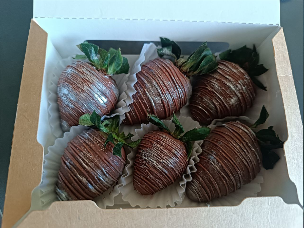 Пришлось тащиться за клубникой. Сделали отлично! Клубника вкусная, бельгийский шоколад.