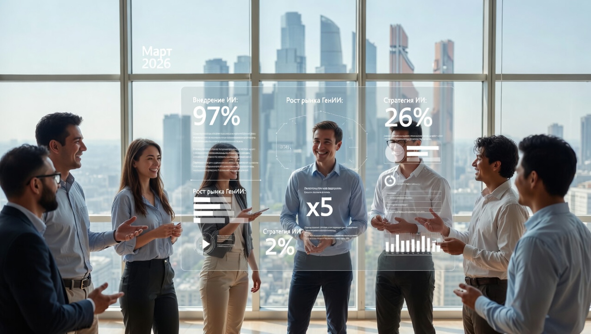 Привет, народ! Свежие данные от Сбера и Strategy Partners (март 2026): 97% крупных российских компаний либо уже внедрили искусственный интеллект, либо активно планируют это сделать в ближайшее время. Это не шутки. Ещё год назад многие говорили «попробуем», а сейчас — массовое внедрение. Только 26% имеют настоящую стратегию по ИИ (остальные просто «пробуют» где получится). Рынок генеративного ИИ в России вырос в 5 раз за 2025 год — до 58 млрд рублей! В компаниях ИИ уже отвечает клиентам, анализирует данные, помогает в финансах, производстве, кадрах и даже в медицине. А что дальше? Эксперты из Deloitte и Ведомостей говорят: 2026 — год, когда ИИ перестаёт быть «игрушкой» и становится обязательной частью бизнеса. Появляются агентные ИИ — они не просто отвечают, а сами выполняют задачи от начала до конца (бронируют, проверяют, платят). Физический ИИ (роботы с мозгами) выходит на фабрики и склады — Xiaomi уже тестирует своих роботов на автозаводах, китайские Agibot сдают в аренду человекопод
