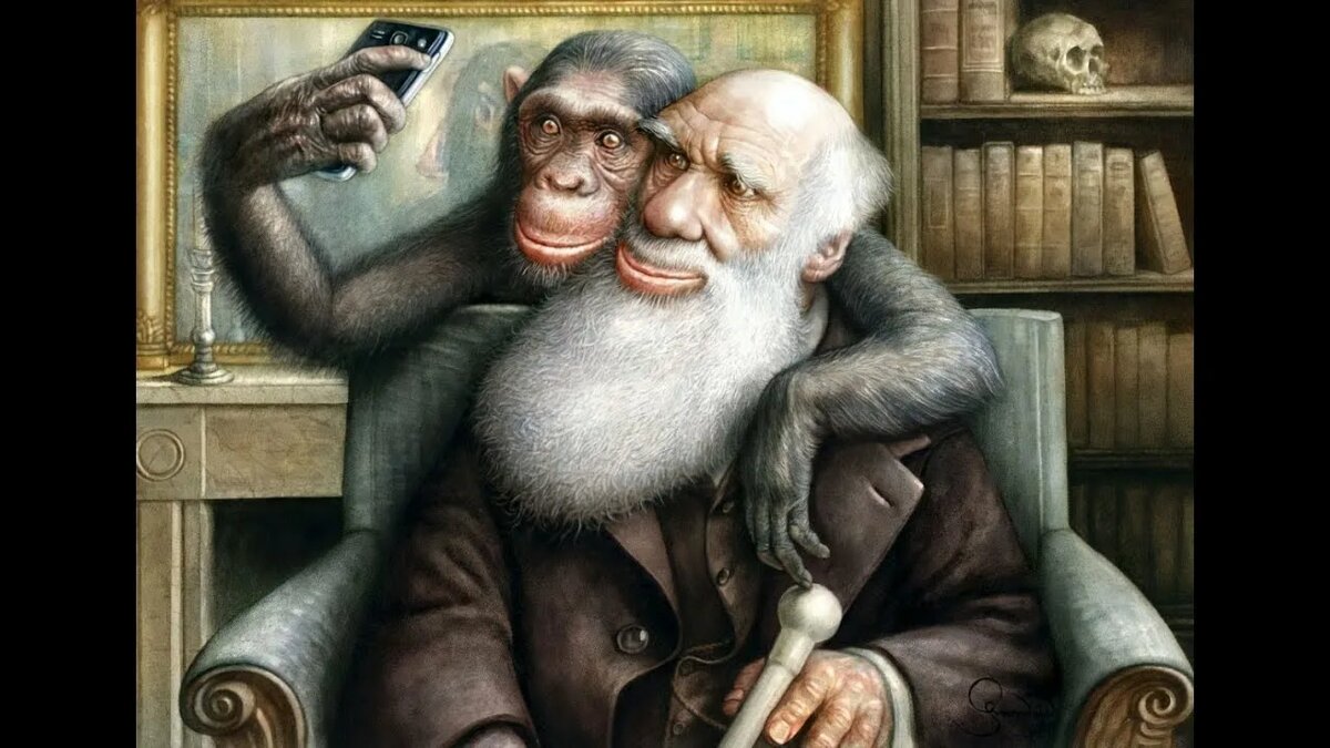 В своё время некий Дарвин, который Чарльз изобрёл гипотезу об эволюции, от которой сам же и отказался за 5 лет до своей кончины. Интересно, что это заблуждение преподают в университетах. Вопрос: кому это нужно и кому выгодно? Но дело в том, что технологическая эволюция действительно была. И всё началось с палки-копалки. Вот так она выглядит. А так выглядит мужик её применяющий. Кстати, что с помощью такого дрючка можно вырастить и возделать? Это только в воспалённых мозгах историков может родится такой бред. Но после палки-копалки возникает палка-стрелялка. Вот так выглядит. А применяющий её мужик – вот так. Ну а после палки-стрелялки конец эволюции. И выглядит это так. Вывод: имеется 2 звена эволюции: палка-копалка и палка-стрелялка. После чего наступает постэволюция.