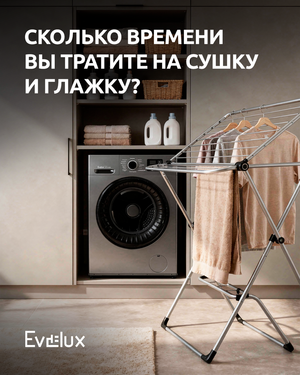 Международный женский день — это повод не только для цветов и тёплых слов, но и для переоценки повседневных дел. Задумывались ли вы, сколько времени и сил уходит на стирку, сушку и глажку? Напольные сушилки занимают место, нарушают уют и превращают уход за бельём в бесконечный процесс, растягивающийся на часы каждую неделю. К счастью, есть простой способ сделать этот процесс быстрее и удобнее: сушильная машина Evelux освободит ваше время, а вещи после сушки не требуют глажки. Её можно установить в любом удобном месте без подключения к канализации.