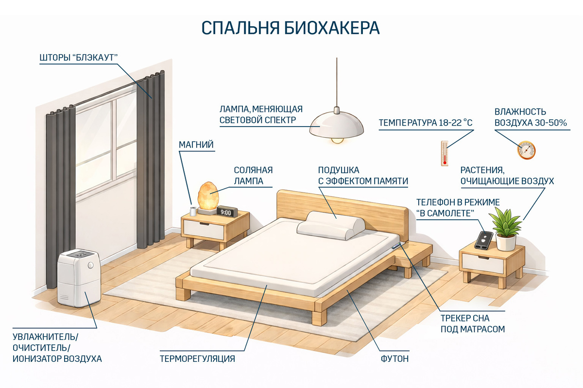 Я тут закопался в тему здорового сна и просто обязан поделиться информацией. Мелатонин — это наш гормон сна. Он вырабатывается только в темноте. Синий свет от телефона или лампочки его убивает. То, на чем мы спим, определяет качество ночного восстановления мышц и позвоночника. — На боку: 10–14 см (расстояние от шеи до края плеча). — На спине: 8–10 см. — На животе: 6–8 см (низкая подушка). — Ищите подушку с эргономичной формой (с валиками) и гипоаллергенным наполнителем (пена с эффектом памяти, бамбук, качественное искусственное волокно). Если интересны такие материалы поставьте лайк, чтоб я понимал вашу заинтересованность и чаще рассказывал о биохакинге.