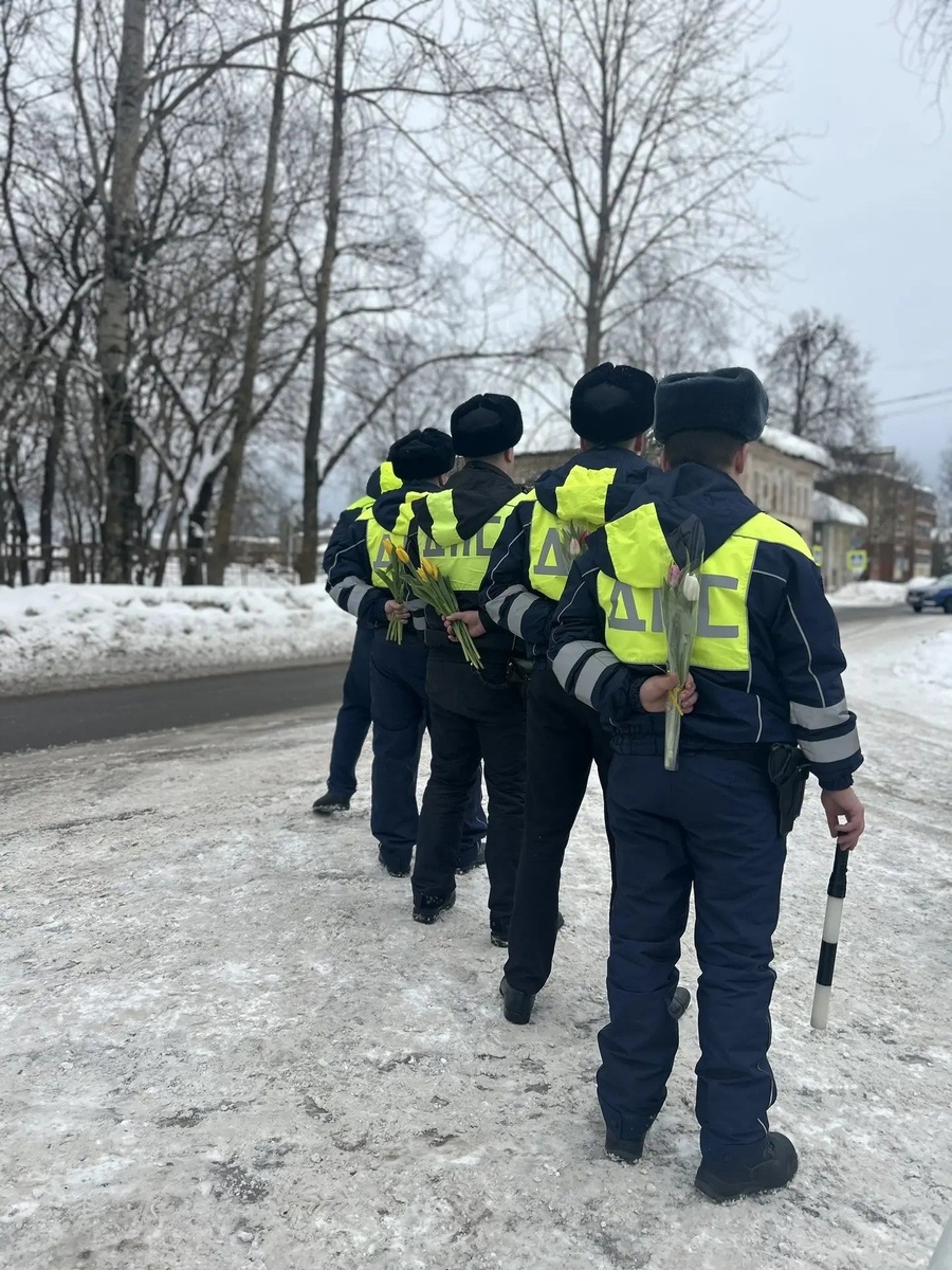 Сегодня дорожные инспекторы Вологодской области поздравляли женщин с 8 Марта