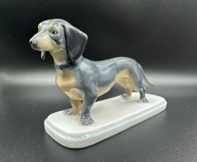 Фарфор, 1900 Фарфоровая статуэтка Такса Metzler & Ortloff (Германия), 14 см. История фирмы началась в 1863, когда Адольф Хён купил территорию шахты Карла Аугуста в Ильменау для основания фабрики. В 1873 к нему присоединились братья Рудольф и Роберт Метцлеры, создав Höhn & Metzler, внесённую в реестр 18 апреля 1873. После ухода Хёна в 1875 партнёром стал Гюго Ортлофф, и фабрика получила имя Metzler & Ortloff. С 1875 предприятие стабильно развивалось: к 1890 – 120 работников, около 2000 наименований, до 3,5 млн изделий ежегодно. Войны и кризисы вызывали упадок, но в 1940 положением улучшилось. После 1945 производство ориентировано на экспорт, в 1959 национализировано, в 1968 передано заводу Лихте, с 1975 марка прекратила существование. Сегодня территорию занимают коммерческие объекты. Стоимость лота: 55 000 ₽ Подробнее на нашем сайте