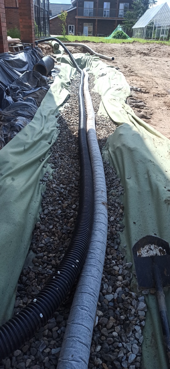 🔹 Планируется благоустройство: газон, дорожки, посадки. Без отвода воды всё это «поплывёт» после первого же ливня.