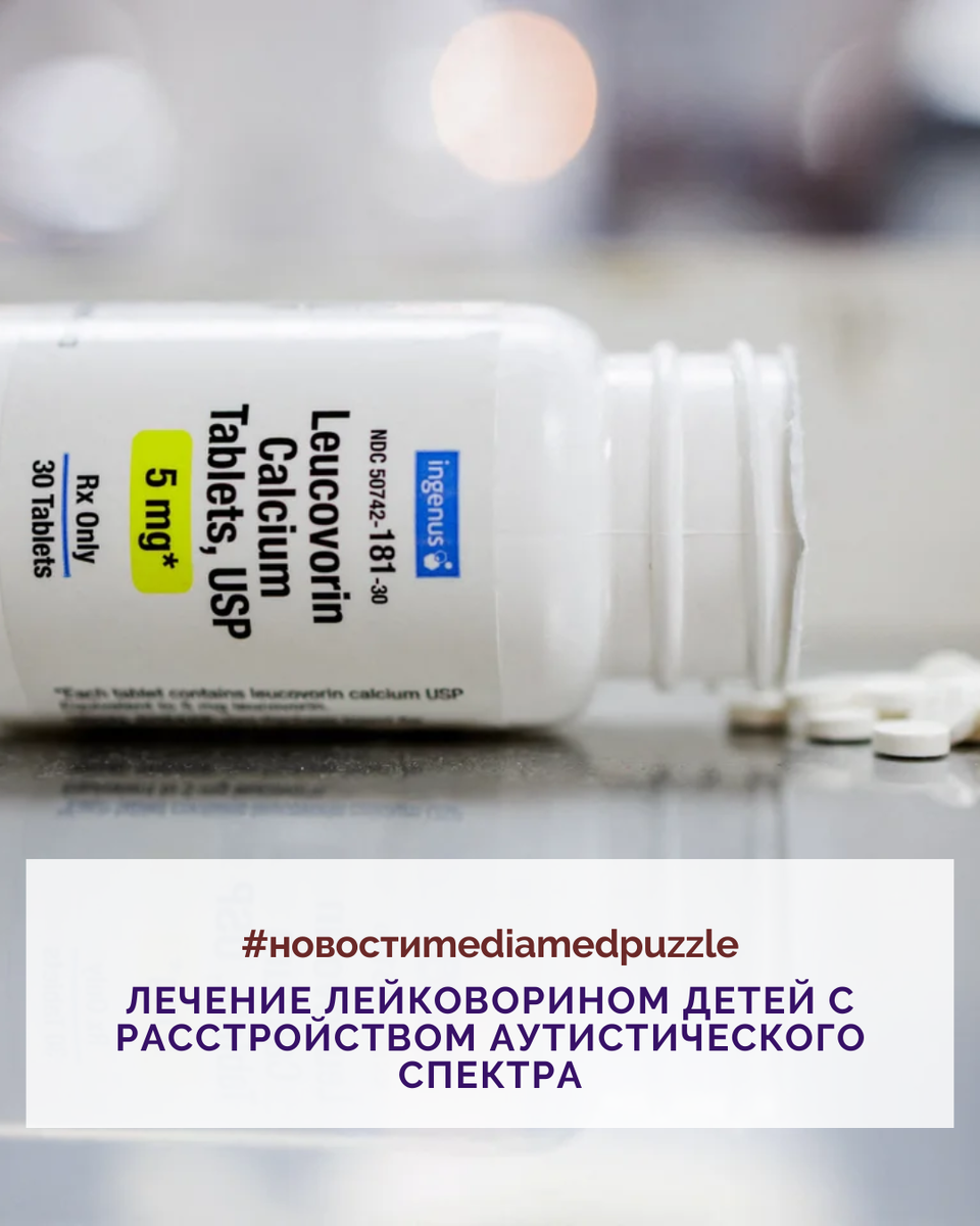 Лейковорин изучался в качестве метода лечения расстройства аутистического спектра (РАС) на основе исследований, сообщающих о корреляции между РАС и церебральной недостаточностью фолатов, однако причинно-следственная связь не установлена. В нескольких небольших рандомизированных исследованиях сообщалось о краткосрочных улучшениях вербальной коммуникации и адаптивного поведения на фоне приема лейковорина по сравнению с плацебо, однако эти исследования имеют высокий риск систематической ошибки. Недавно крупнейшее из этих исследований было отозвано из-за несоответствий в представленных результатах и опасений относительно его статистических методов [5]. Другое исследование было приостановлено Управлением по контролю качества пищевых продуктов и лекарственных средств США (FDA), а впоследствии прекращено из-за опасений по поводу управления исследованием и невозможности подтвердить его результаты [6]. Таким образом, остается неясным, приносит ли лейковорин пользу при РАС, и прежде чем можно б