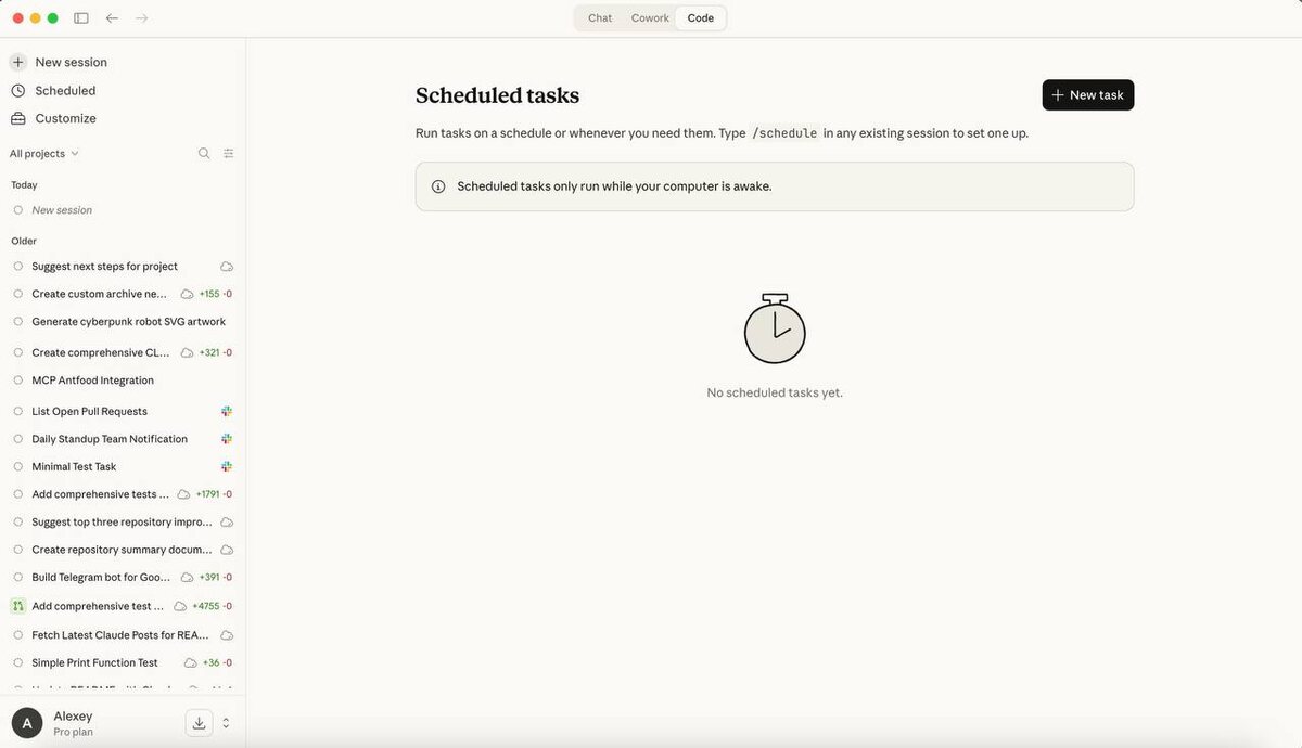 Теперь Scheduled Tasks полностью доступны в десктоп-приложении Claude. Можно ставить задачи по расписанию, а чтобы они не прерывались — добавили ещё одну фишку: компьютер не будет уходить в сон, пока открыт Claude. То есть теперь можно спокойно оставить ИИ работать в фоне. И да, ещё обновили анимацию Clawd 🦀👀 😎КиберПоток | Навигация #новость #claude #clawd #Al #КП