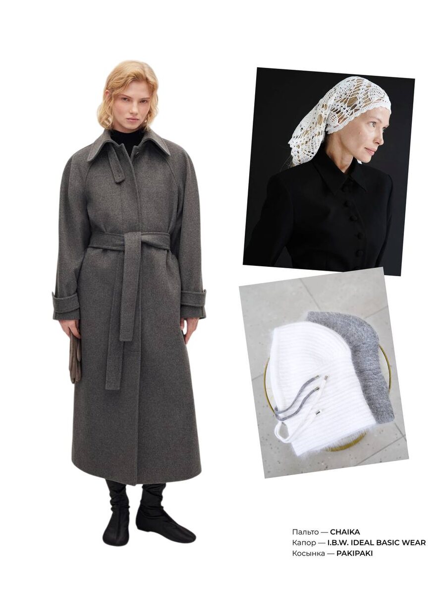». Вся история крутится вокруг бизнеса по исполнению смертной казни «подрядчикам». Герои постоянно оказываются между личными чувствами, деньгами и моралью, а на фоне этой напряжённой истории женские персонажи выглядят особенно выразительно: каждая из них по-своему проживает происходящее рядом с мужчинами, втянутыми в жуткие истории. Мы примерили на этих дам образы, которые позволили бы сохранить дух эпохи 90-х в наше время. Серое пальто-реглан CHAIKA легко представить на Нине — жене Кости Волкова, тихой и внешне мягкой героине, за которой скрывается гораздо больше эмоций. Капор из ангоры I.B.W. и вязаная косынка PakiPaki добавляют образу тепла и уюта — почти домашнего. Для Анжелы идеально работает более дерзкий образ. Объёмная эко-шуба Only Me, папаха из экомеха и чёрные сапоги LALOU яркой героине подойдут особенно Платье AME будто сшито для Кати, втянутой в события гораздо сильнее, чем ожидала. Минимализм платья создает ощущение внутреннего напряжения под внешним спокойствием. Туфл