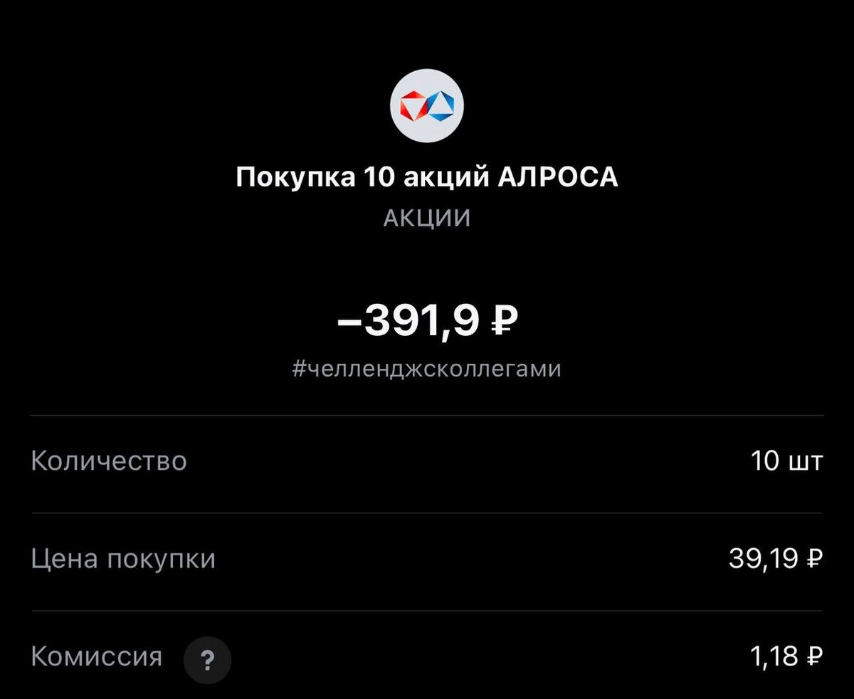 ! Сегодня покупка #377 и выставляем заявку стоп-лосс! Статистика портфеля на стороннем сервисе, можно посмотреть по "ссылке" Напомню это челлендж с коллегами, каждый рабочий день пополняем брокерский счет на 250 рублей и инвестируем. Если возникли вопросы или есть не понимание, что делать. Задавайте «тут» Покупка #377 🟢 «АЛРОСА» 39.19 rub #ALRS Стоп-лосс 🔴 «Сургутнефтегаз-преф» 46 rub #SNGSP #каждыйсможет #челенджсколлегами ✈️ Стас Мироненко