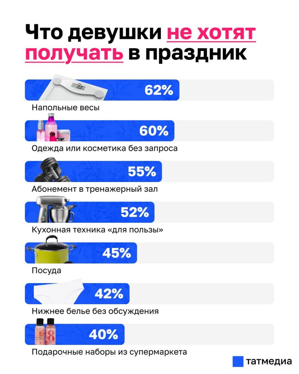 💝💐Девушки назвали самые неудачные подарки на 8 марта В антирейтинг попали вещи, которые могут намекать на недостатки или оказываются бесполезными. Выиграйте iPhone | Татмедиа в MAX