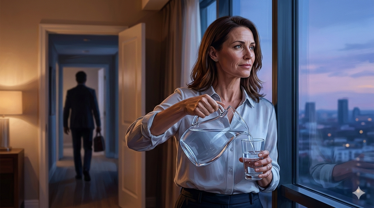 Олег вернулся домой позже обычного. Он не разулся, прошел прямо в кухню, где Вера допивала остывший чай, глядя в темное окно. Свет люстры подчеркнул морщинки в уголках её глаз. Она знала, что ей уже за сорок, но внутри всё ещё жила та девчонка, которая когда-то верила в сказки.
