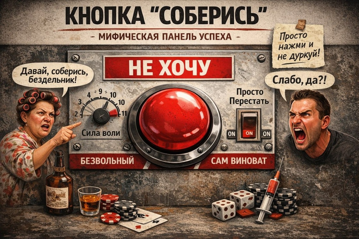 ) Есть особая «скрытая» профессия: лечить зависимость всего одной фразой «соберись» (причем есть несколько вариаций этой фразы, но смысл общий понятен). Для нее даже не нужен диплом. Достаточно уверенного тона и щепотки презрения в голосе. ⭐️ Это, кстати, универсальный инструмент. Попросили бы кто WHO и NICE срочно обновить рекомендации: «Новый метод лечения: просто сказать «соберись». Уровень доказательности: тетя Люда видела, как сосед после этой фразы как-то держался несколько дней». Народная логика гениальна по-своему: если человеку плохо от алкоголя, ставок, веществ, то надо... сделать еще хуже самому себе в психологическом плане. Потому что стыд, как известно, «лечит все»: тревогу, депрессию, зависимость, а заодно отбеливает зубы и повышает курс рубля и так далее. Как это происходит: человек наконец решается признать проблему. И тут же на помощь приходит стыд со словами: «Безвольный». «Сам виноват». «Соберись» И этот стыд где-то в голове порождает миф, что у зависимого ес