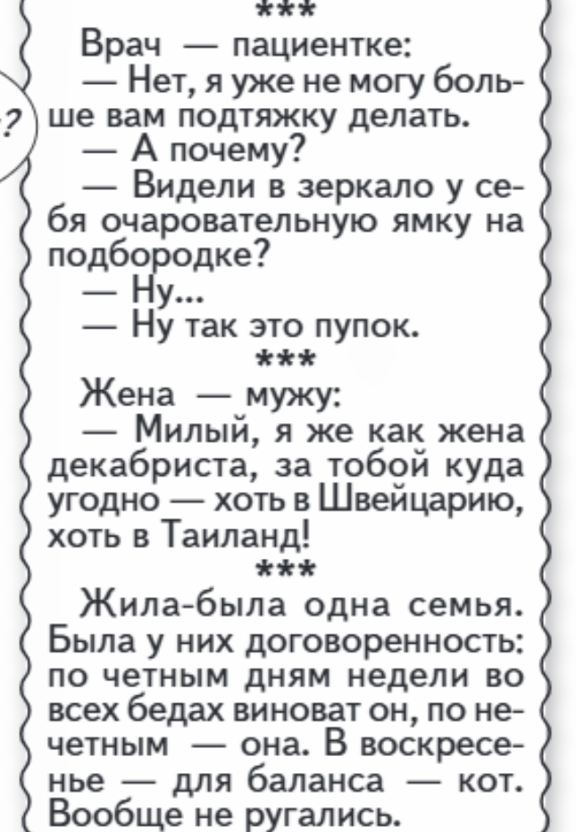 Рабочий день подходил к своему логическому завершению - я решил зайти в бар, что находился в соседском помещении и немного расслабиться, но не тут-то было. Кто-то открыл дверь моего кабинета пинком ноги. - Привет! - сказала она мне, изящно присев на краешек мягкого стула, напротив меня. Нас разделял стол, но я видел её острые коленки, закинутые одна на другую, без чулков, и это зимой. Она закурила "Беломорину". Запах серого дыма напомнил мне детство. Мои глаза слегка заслезились. От дыма. А её - нет. Её карие глаза с поволокой знали своё дело. Они смотрели в меня, я бы даже сказал, сквозь меня, вернее сквозь моего кошелька, что до этого времени тихо-мирно таился в нагрудном внутреннем кармане. Я невольно пощупал его. - Где достаёшь эти давно исчезнувшие папиросы? - спросил я. - Когда-то навезла из Одессы. - Контрабанда, Олежек, контрабанда. А ты неплохо устроился: свой кабинет, свой журнал. - Да чего там хорошего. - заёрзал я в кресле из чистой натуральной кожи оленя. - Выживаем з
