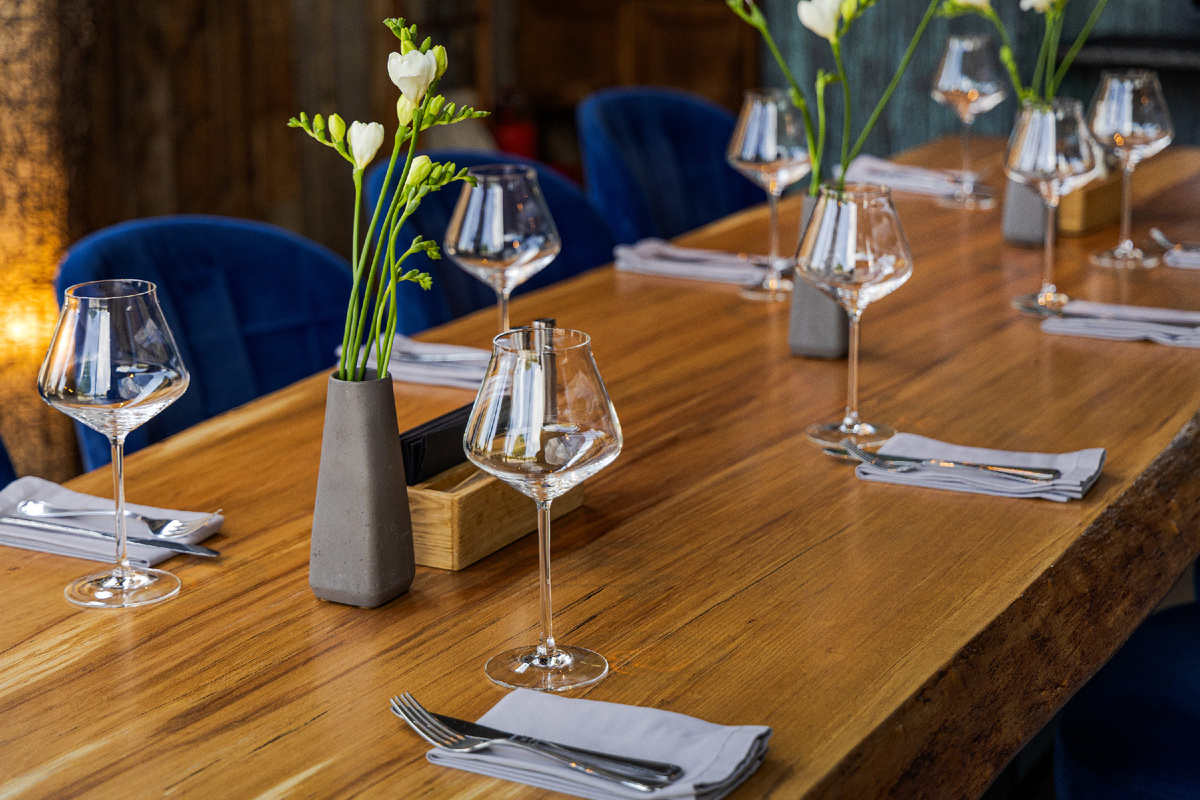 Среди других блюд: карпаччо из цукини с цветами и рикоттой, паппарделле с телячьей щекой, пармезановым муссом и черным трюфелем. На горячее предлагаются утиная грудка в вине «Вин Санто» с ягодами или филе лосося со сморчками и шпинатом. Финальный аккорд — фисташковый рулет с маскарпоне и малиной.