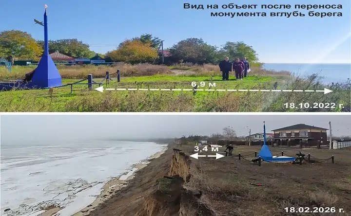 Всё из-за того, что там разрушается берег. Речь идёт о монументе погибшим красноармейцам и морякам в Неклиновском районе в хуторе Красный Десант. Учёный ЮНЦ РАН Олег Хорошев рассказал, что с октября 2022 года по февраль 2026-го расстояние от ограды до обрыва сократилось на 3,5 метра. Монумент уже переносили один раз, но береговая линия продолжает отступать. Памятник снова нужно двигать вглубь. Под угрозой и другие объекты: разрушаются остатки древнего Беглицкого некрополя и старого кладбища в селе Порт-Катон. 👉🏻Новости №1 в Ростове 💌Прислать новость/фото Ростов Папа теперь в Ⓜ️🅰️❌