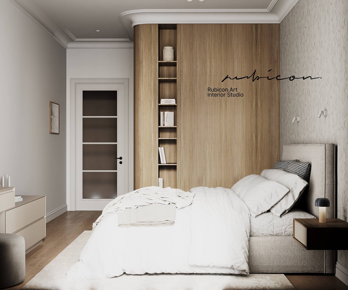 #ДП_Серебряный_фонтан_70 Ремонт был заморожен, ввиду того, что это не основная квартира клиентов. Этой весной продолжаем завершать реализацию 🙌🏼 За эти три года радиусные шпонированные панели стали распространенной историей и перестали стоить, как крыло самолёта 😁 а интерьер на долгое время останется актуальным ✨работаем 🤝🏼