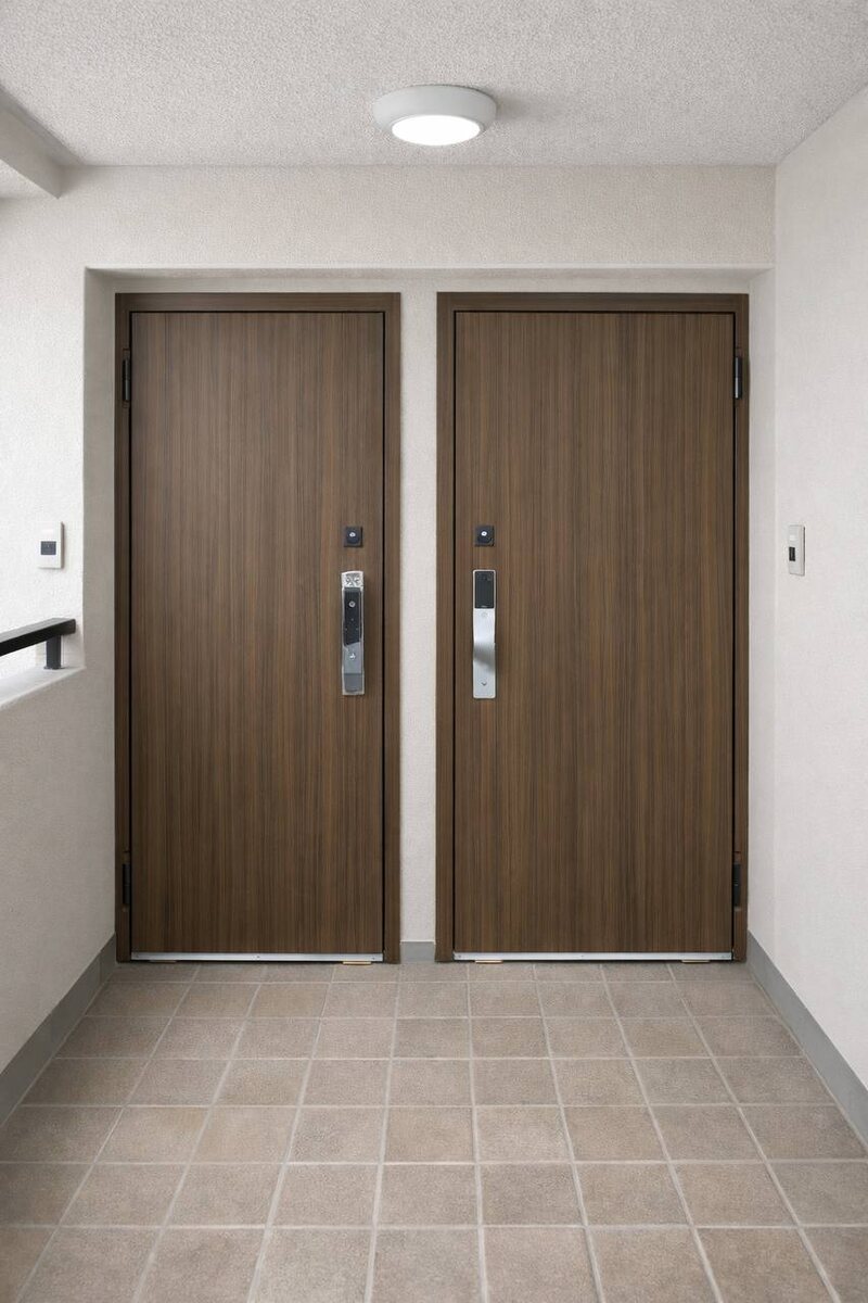 На фото две входные двери с одинаковой внешней отделкой. Такое решение часто выбирают для подъездов и современных жилых комплексов, когда важно сохранить единый внешний вид коридора. А вот внутренняя часть может быть выполнена по-разному — под интерьер каждой квартиры. Обе двери оснащены электронными замками Dircode U800 и Lockin — удобный доступ по коду, карте или через приложение. * При необходимости эти варианты дверей могут быть оснащены и обычными механическими замками. #входныедвери #электронныйзамок #умныйдом