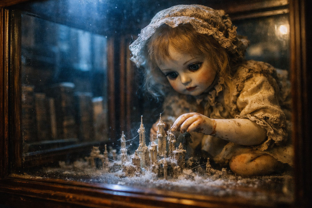Это происходило всегда одинаково. Лунный свет, пробиваясь сквозь пыльное стекло витрины, падал на фарфоровое личико. И в этом серебристом сиянии кукла делала первый вдох. Не грудью, которая была пуста, а всем своим существом. Она втягивала в себя ночь.