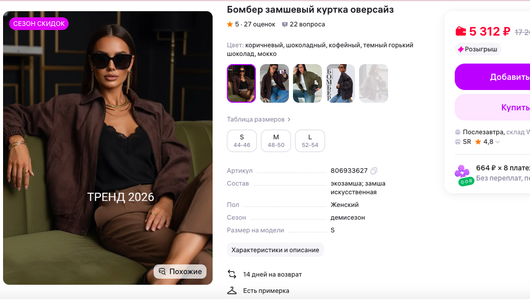 Вы только посмотрите: мягкая замша, свободный крой, тот самый расслабленный оверсайз, что не выходит из моды уже который сезон! Представили? Ветер играет складками, а вы неспешно идёте по улице в прохладный, но солнечный день…С чем носить?
