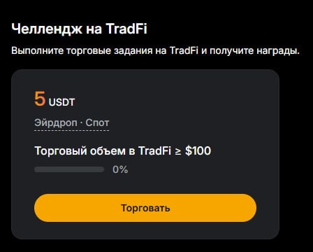 ❔ можем получить 5$ за простое действие Торговый объем в TradFi ≥ $100, хотя в прошлый раз награду за похожий квест я не получил хотя меток не было