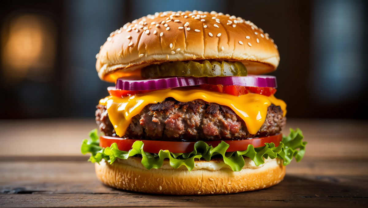 Бургер — одно из самых популярных блюд мировой уличной кухни. Но настоящий профессиональный бургер отличается от обычного фаст-фуда: сочная котлета, мягкая булочка, сбалансированные соусы и свежие овощи. Ниже представлен подробный ресторанный рецепт, который можно использовать как для домашней кухни, так и для food-блога. 👨🍳🔥 Сформируйте из фарша 2 котлеты по 150 г, толщиной примерно 2 см. Сделайте небольшое углубление в центре каждой котлеты. 💡 Совет шефа: