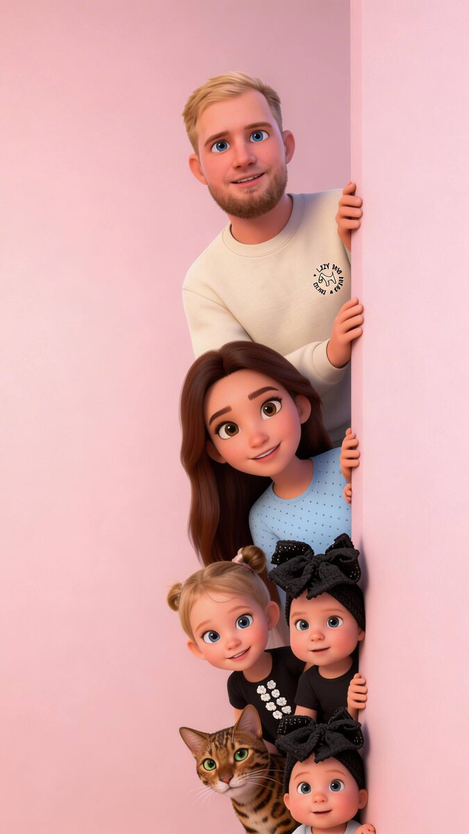 ) И самое время показать, какие еще варианты были, но уже смешные 🤭 Последняя хорошая, но мы все кареглазые и кошки, как клоны) Пришлось делать без кошек
