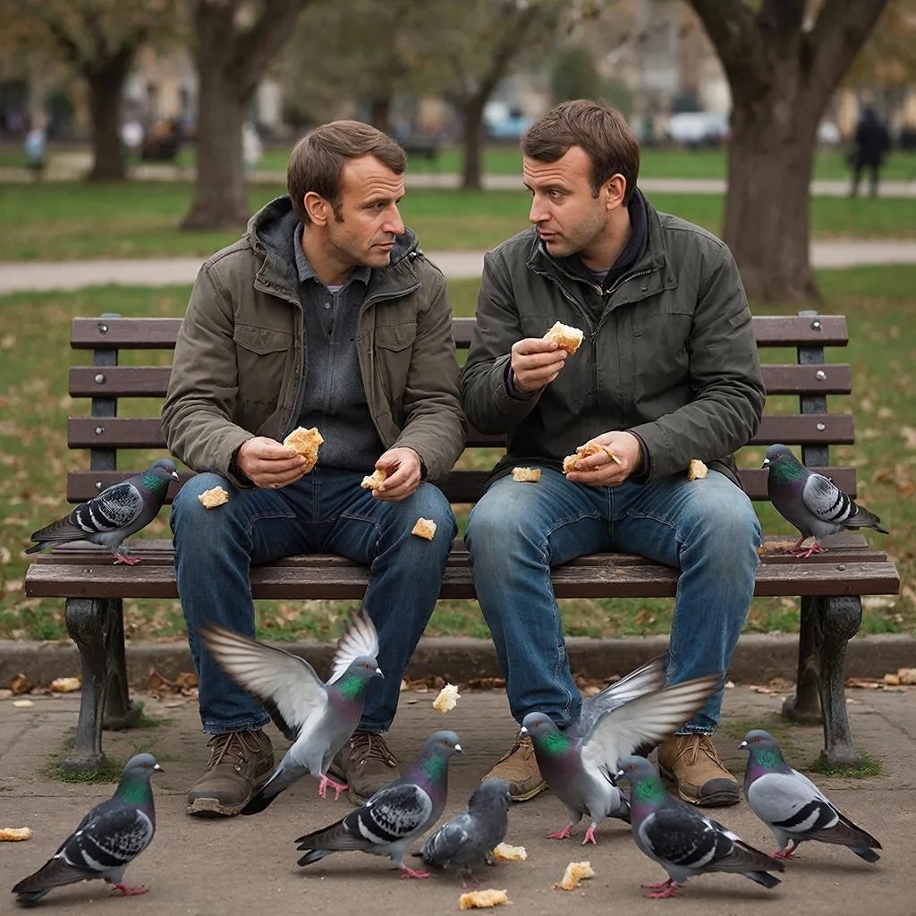 На одной из таких скамеек сидит человек средних лет. Его лицо спокойное, слегка задумчивое, взгляд устремлен куда-то вдаль, туда, где тихо шелестят деревья и кружатся птицы. У ног человека разбросаны хлебные крошки, и вокруг них уже собирается шумная стайка пернатых друзей.