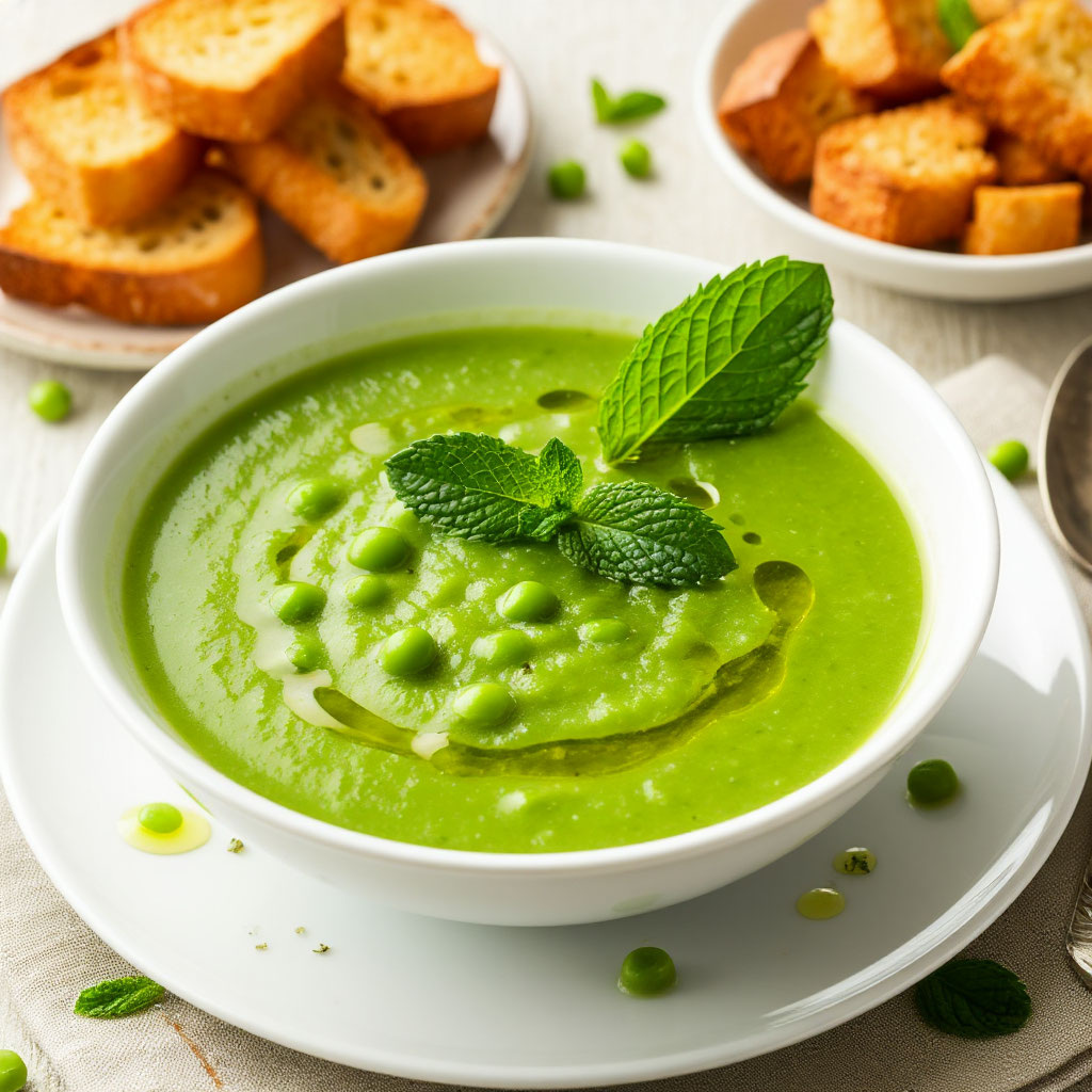🟢 Рецепт 1. Крем-суп из зелёного горошка с мятой и пармезаном