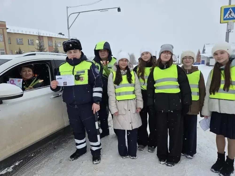 В этот день их помощниками стали юные инспектора движения средней школы № 7 Сотрудники Госавтоинспекции Давлекановского района и отряд ЮИД школы №7 г. Давлеканово присоединились к ежегодной акции «Цветы для автоледи». Тёплые слова поздравлений накануне Международного женского дня были адресованы прекрасным жительницам города и района. Автолюбительницам были вручены памятки о правилах перевозки детей и о работе чат-бота Госавтоинспекции Республики Башкортостан. Самым приятным моментом было вручение цветов и памятных открыток, которые приготовили дети.