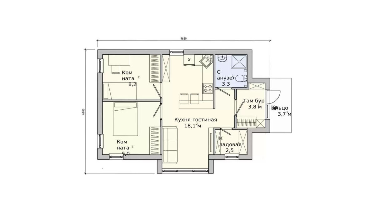 🏡 Дом, где живёт счастье — уютный уголок для пары или семьи из трёх человек! Представьте: утро начинается не с шума машин, а с пения птиц за окном. Вы выходите на крыльцо, вдыхаете свежий воздух и видите, как ребёнок с восторгом бежит по зелёной траве. Вокруг — только природа и покой, а ваш дом создан для тёплых семейных моментов 🌿🌞 Мы нашли идеальное решение для вас — проект БП‑49/3: небольшой, но очень продуманный одноэтажный дом 6×9 м, общей площадью 51,5 м². Здесь хватит места для уютных вечеров, игр детей и отдыха всей семьи — или работы из дома. ✨ Почему именно он вам подойдёт? • Две спальни — личное пространство для родителей и светлая комната для малыша, где сбудутся его самые волшебные сны. Можно преобразовать одну из комнат в кабинет или гостевую спальню. • Кухня‑гостиная с окнами на две стороны — готовите завтрак, а ребёнок играет рядом; днём много света, а вечером — уютная семейная трапеза. • Компактность и функциональность — тамбур и холл защищают от сквозняков, кладов