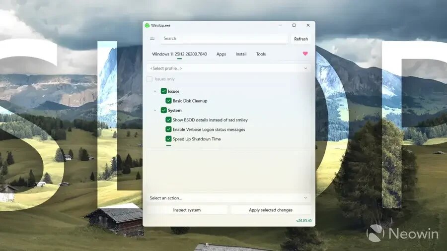 Winslop — популярный инструмент для удаления ИИ из Windows 11, и его последнее обновление делает приложение лучше, придавая ему более современный пользовательский интерфейс. Читайте далее... — neowin.net Не всех устраивает то, что Microsoft делает с Windows 11, особенно в части функций на базе искусственного интеллекта. В связи с этим существует довольно сильный спрос на инструменты и приложения, которые могут очистить операционную систему от лишнего, удалить ненужное ПО и отключить ИИ. Microsoft, в отличие от Mozilla, не предлагает своим пользователям решение в один клик на уровне системы, поэтому на помощь приходят сторонние приложения. Winslop — один из таких инструментов, и его последнее обновление придает ему гораздо более современный вид. До версии 26.03.40 Winslop выглядел как нечто прямо из Windows 98. Помимо устаревшего внешнего вида, дизайн приложения на основе WinForms был менее удобен для сенсорных устройств. Теперь, с последним релизом, Winslop основан на WinUI 3 — нативно