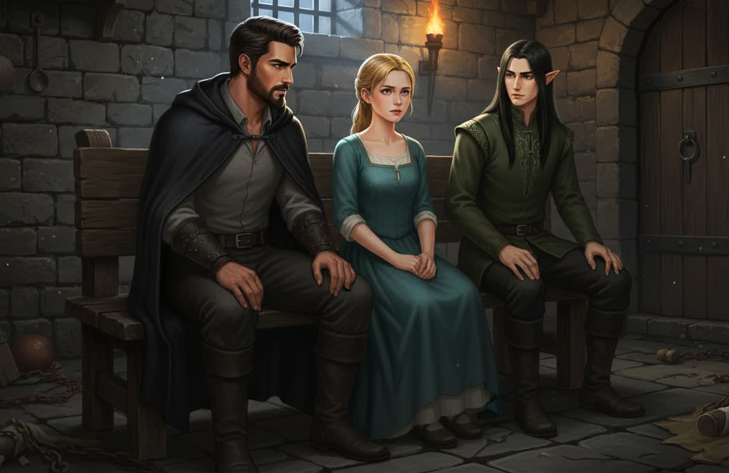 В темнице было сыро, темно и пахло плесенью. Лена сидела на куче соломы, поджав ноги, и смотрела на Корвуса. Он сидел напротив, привалившись к стене, и вид у него был... виноватый. Очень виноватый. Тингол устроился в углу с блокнотом и, кажется, был единственным, кого происходящее совершенно не напрягало. Вокруг них мерцали стены лёгким голубоватым свечением, которое то усиливалось, то затухало в такт чему-то неведомому.