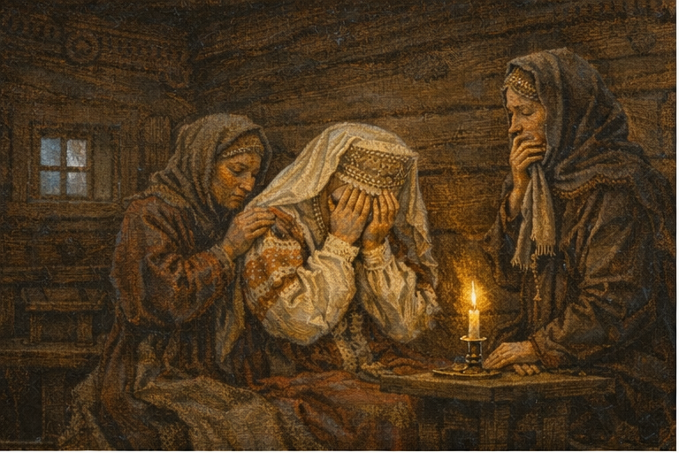 Свадьба — праздник, радость, новая жизнь. Но для девушки Московского царства свадьба могла означать конец прежнего мира. И иногда — начало жизни с человеком, которого она почти не знала. В XVII веке браки в Московском государстве чаще всего устраивали родители. Это не обязательно означало жестокость или принуждение — семья просто решала, какой союз будет выгоднее и безопаснее. Но для самой девушки всё происходило очень быстро. Иногда она узнавалa о будущем муже всего за несколько недель до свадьбы. А иногда — только в день сватовства. Если родители соглашались, подготовка начиналась сразу. Отказ девушки почти никогда не учитывался. Существовал даже особый свадебный обычай — плач невесты. Его называли «причитания». Невеста вместе с подругами пела особые песни, в которых она как бы прощалась со