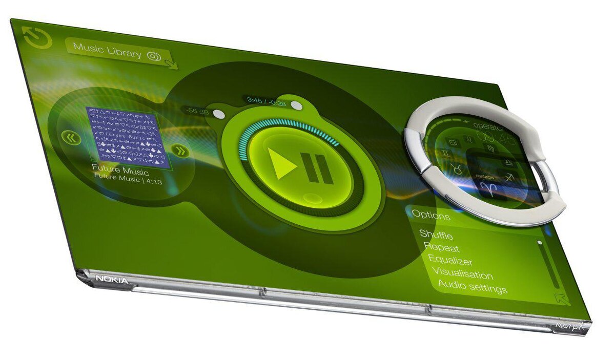 Когда в 2008 году Nokia совместно с Кембриджским университетом показала концепт Morph, у зрителей перехватило дыхание . Это был не просто телефон — это был кусок будущего, который можно было согнуть и надеть на запястье как браслет . Вся поверхность аппарата — гибкий прозрачный дисплей, реагирующий на прикосновения. Устройство могло само очищаться от грязи (капля мёда скатывалась, не оставляя следа), «чувствовать» окружающую среду и даже определять, что яблоко нужно помыть, улавливая мельчайшие частицы на его поверхности .